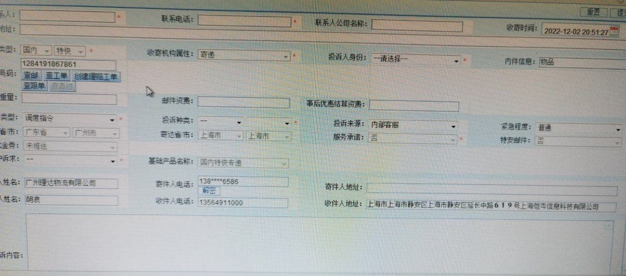快递收货地址等信息查询
